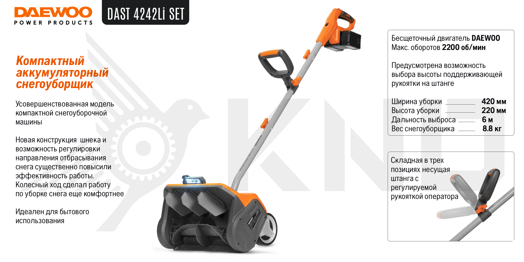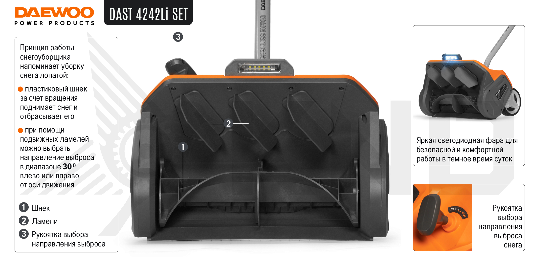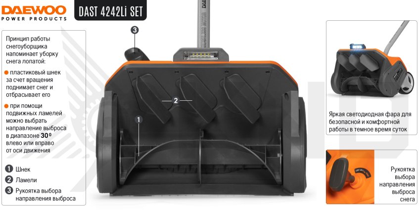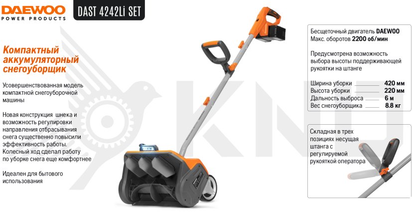 Аккумуляторный снегоуборщик DAEWOO DAST 4242Li без АКБ и ЗУ